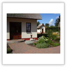 Im Aussenbereich befindet sich ein Geräteschuppen für die Fahrräder, sowie mit Gartenliegen, Sonnenschirm und einem Bollerwagen für die Kinder oder zum Einkaufen. Der gemütliche Gartenbereich mit Gartenstühlen und Tisch grenzt an 2 Parkmöglichkeiten für Ihre Pkw´s.